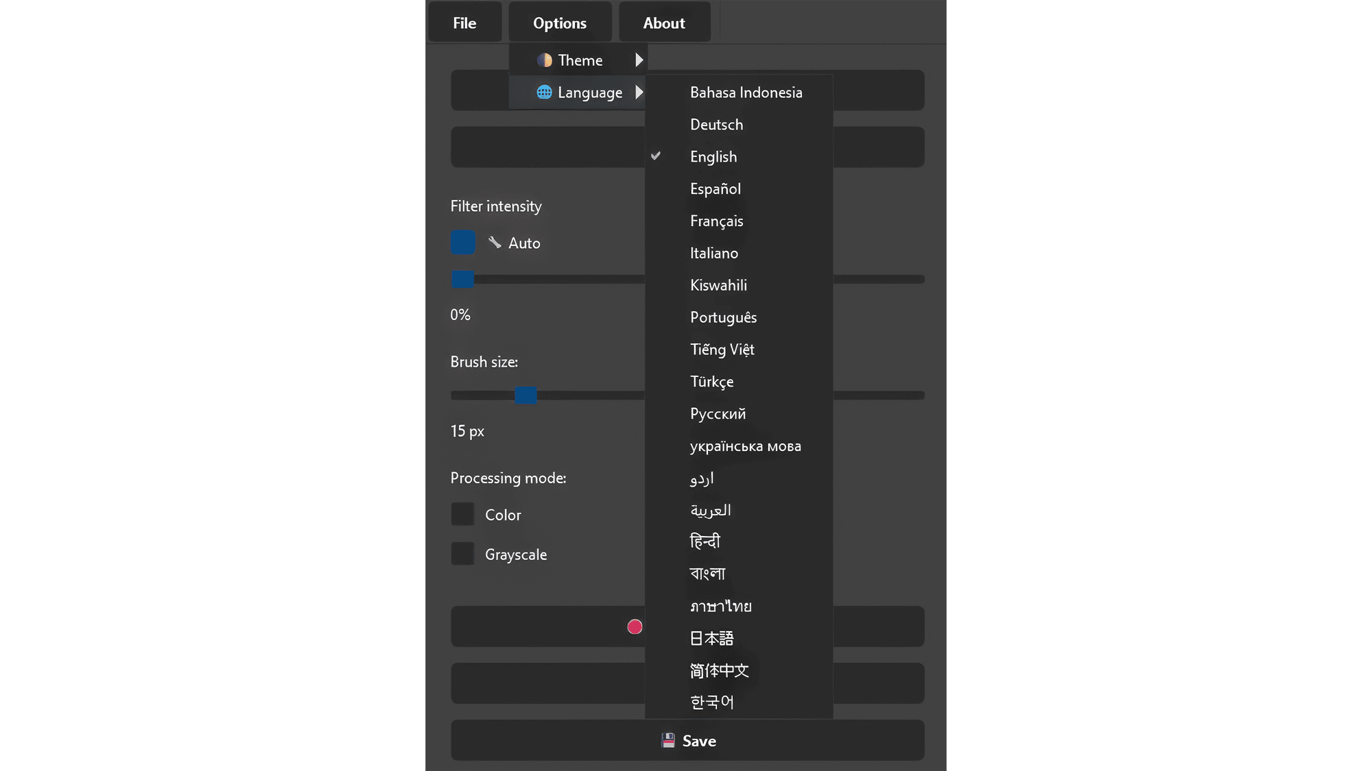INTERFACE LANGUAGES: Bahasa Indonesia, Deutsch, English, Español, Français, Italiano, Kiswahili, Português, Tiếng Việt, Türkçe, Русский, українська мова, اردو, العربية, हिन्दी, বাংলা, ภาษาไทย, 한국어, 日本語, 简体中文